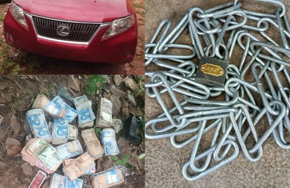 “In the course of the operation, a red Lexus 350 Jeep, two million naira cash (part of the ransom payment), three mobile phones, and two leg chain shackles were recovered.