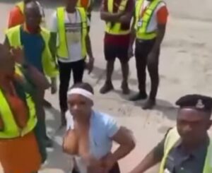 Air passenger, Ms Comfort Emmanson reportedly stripped during a row with some Federal Airport Authority of Nigeria, FAAN officials, after she physically assaulted air hostess at the Lagos airport on Sunday August 10th 2025.